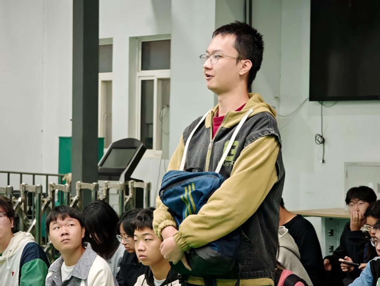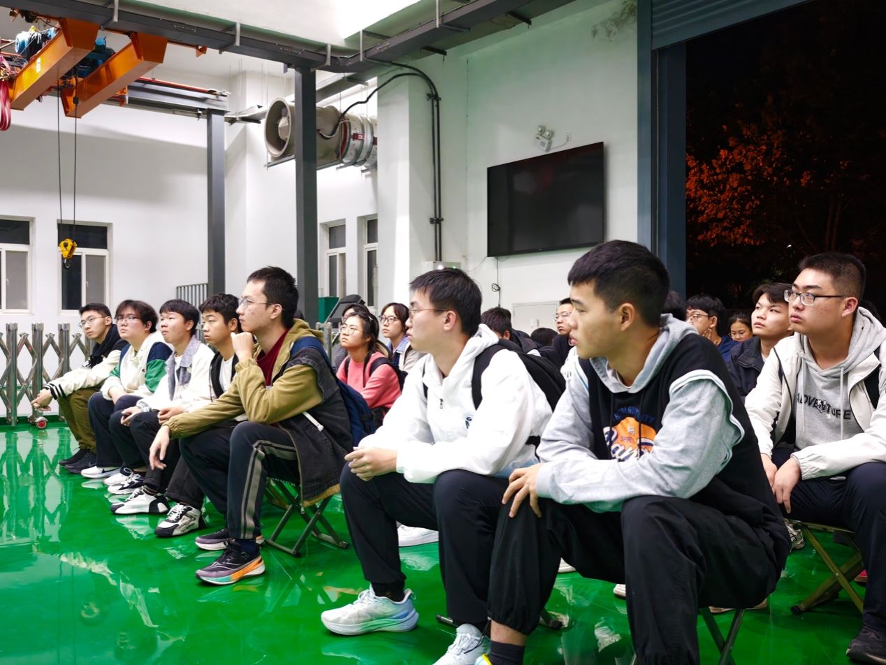 曾教授首先介绍了航海学院的历史沿革、专业设置及研究方向,阐述了优秀校友的突出贡献与代表性成果。随后,他带领同学们参观了翱翔重点实验室,详细讲解了仪器设备与模型展项的相关数据及研发历程,使在场每位师生对海上测试、水下攻防、深海对抗等领域形成了具体而深刻的认识。在课程的互动环节中,同学们不仅结合自身研究兴趣向曾教授请教,还就人才培养、技术革新等议题与老师进行了深入探讨。曾教授对每位同学的提问均给予肯定并详尽解答,勉励大家勤学精进、献身国防。