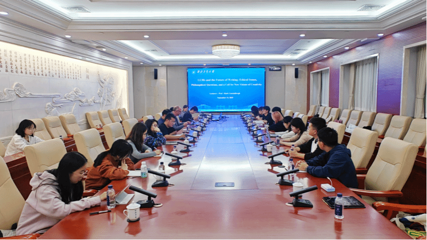 报告中,科克尔伯格教授结合与美国北伊利诺伊大学戴维・J. 贡克尔教授合著的新书《沟通型人工智能》(Communicative AI),多维度剖析大语言模型带来的伦理挑战与发展机遇。这场深度学术报告,既为师生搭建了接触国际前沿理论的平台,更启发大家以批判性视角审视AI技术与人类创作的关系,为探索人工智能时代的学术创新与文化发展注入了思想动能。