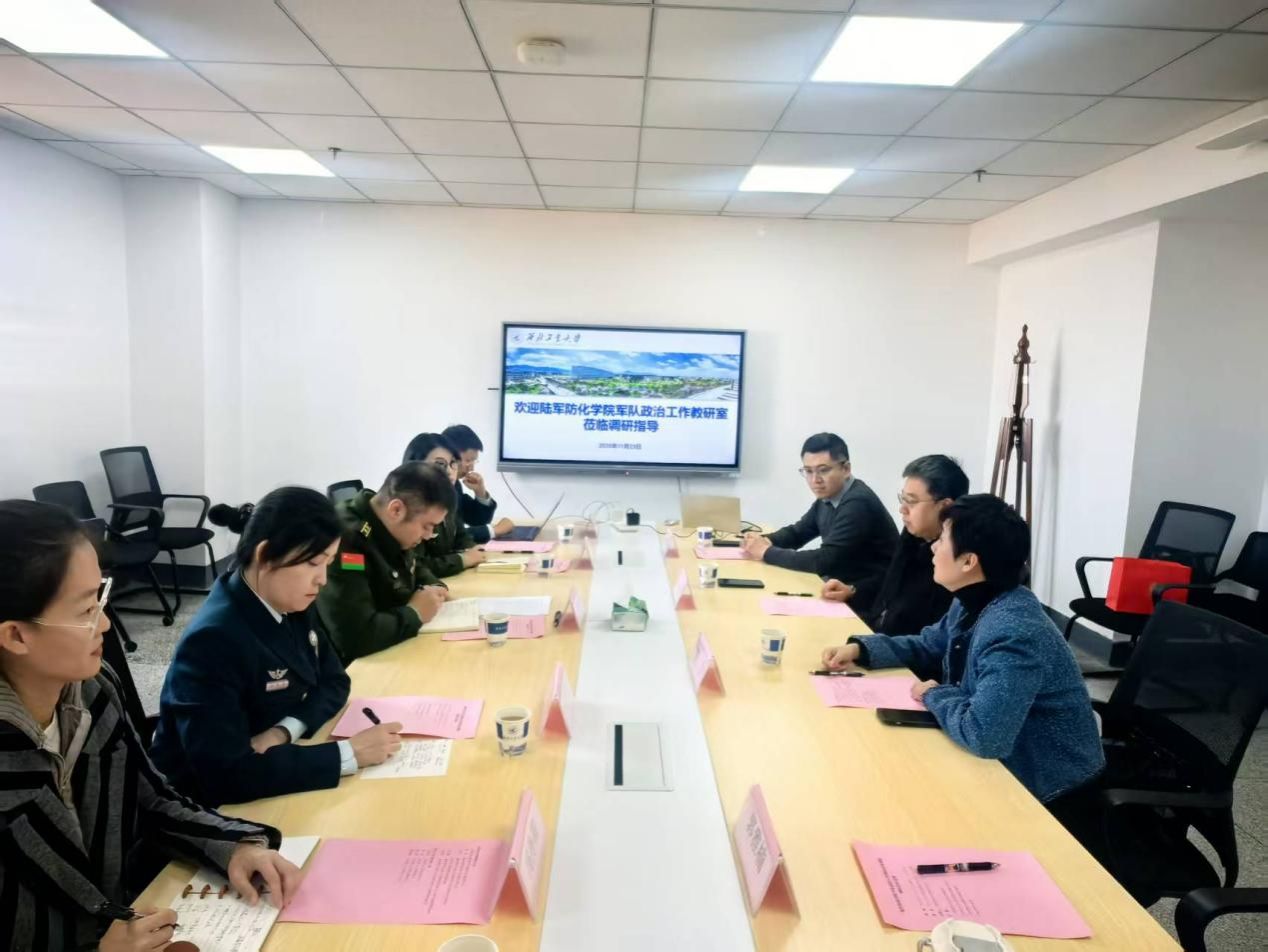 11月23日上午,陆军防化学院军队政治工作教研室主任仁青邓珠一行来我院调研。学院党委书记王彦革,副院长贺苗,党委副书记耿云辉,办公室主任郭雅楠参加了此次会议。会议由王彦革主持。