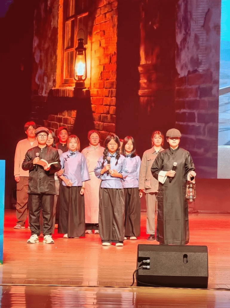 决赛舞台上,我院班级的展演节目匠心独运,以“情景剧+合唱”的融合形式深情呈现。当1938年古路坝的麻油灯火遇上2025年西工大图书馆的灯光,一段跨越近百年的星火传承故事徐徐展开。舞台之上,时空交错:一侧是烽火岁月里,西北工学院学子们在简陋学舍中抱书苦读,以“读好书救中国”的信念坚守初心;另一侧是新时代校园中,博彩网站大全