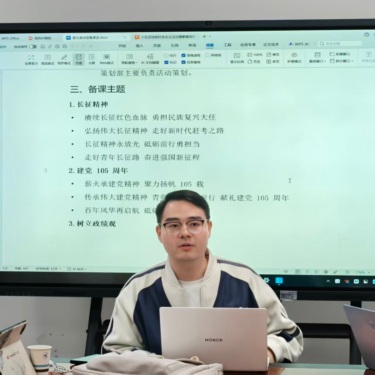 本次备课会聚焦六大核心选题,为宣讲工作指明方向。选题紧扣时代脉搏与学校特色,涵盖长征精神、建党105周年、树立和践行正确政绩观、大国三航、“总师育人文化”、以及“十五五”规划,引导成员将红色精神、时代思想、校情校史与青年担当有机结合,打造有深度、有温度、有特色的理论宣讲内容。