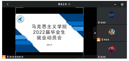2022届毕业生就业动员会以线上+线下相结合的方式顺利召开。学院党委副书记李刚、辅导员马超、研究生会成员及2022届全体毕业生参加了本次就业动员会。会议由兼职辅导员周家欣主持。