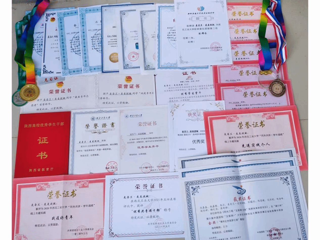 麦吾兰·麦麦提敏多次获得学校奖学金,本科期间荣获校优秀学生并获校级一等奖学金、博彩网站大全 优秀毕业生。同时他积极参加各类竞赛,累计各级各类竞赛、表彰奖励20项,其中省部级2项、校级18项;累计各级各类学科竞赛、表彰奖励8项,其中省部级1项、校级7项。