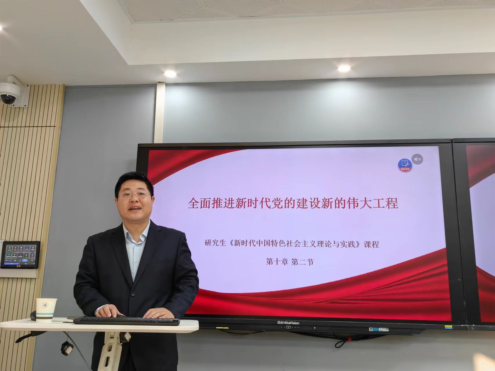 郭松教授曾获第二届全国思想政治理论课教学展示活动特等奖、陕西省首届思政课大练兵“教学标兵”、全省思想政治工作先进个人、陕西省“青年五四奖章”提名奖、陕西好青年等荣誉称号。本次示范课展示题目是“全面推进新时代党的建设新的伟大工程”。郭松教授向与会老师展示了如何设计好课程导入的“黄金30秒”,并聚焦如何正确认识新时代党的建设的历史方位这一重大问题旁征博引、深入浅出地进行了教学示范。